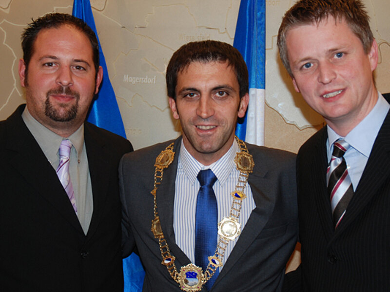 In der Gemeinderatssitzung am 23. Oktober wurde Erwin Bernreiter zum neuen Bürgermeister der Stadtgemeinde Hollabrunn gewählt. In seiner Antrittsrede legte der 39-jährige Stadtchef sein politisches Credo ab: "Ich bin ein Mann der Tat. Und an meinen Taten will ich gemessen werden." Erwin Bernreiter, verheiratet und Vater von zwei Kindern, betreibt in Hollabrunn eine Landwirtschaft und ist seit 1995 im Gemeinderat und seit 2004 als Stadtrat für Kindergärten, Spielplätze und Grünanlagen verantwortlich. In dieser Funktion hatte er in den vergangenen 12 Monaten seine politische Bewährungsprobe zu bestehen: den Neubau des Kindergartens in der Robert-Löffler-Straße innerhalb eines Jahres, nachdem das neue Kindergartengesetz das Eintrittsalter auf 2 ½ Jahre erweitert hatte. "Trotz der extrem kurzen Planungs- und Bauzeit konnten dabei viele Wünsche und Anregungen von Familien berücksichtigt werden", betonte Erwin Bernreiter, "Hollabrunn gilt bei der Umsetzung aller Kindergarten-Baumaßnahmen landesweit als Vorzeigebeispiel." Großes Potenzial sieht der neue Bürgermeister für seine Stadtgemeinde auch in der beständigen Weiterentwicklung der Lebensqualität für Familien, in der Positionierung als Wohn- und Wirtschaftsstandort und im positiven Zusammenwirken von Stadt und Land. "Dafür lohnt es sich, dass man sich persönlich engagiert." Seinen landwirtschaftlichen Betrieb konnte Erwin Bernreiter mit Unterstützung seiner Familie so organisieren, dass er sich auch mit voller Tatkraft seinem neuen Amt widmen kann. Was seinen politischen Arbeitsstil anbelangt, ließ Bernreiter in seiner Antrittsrede nichts an Klarheit vermissen: "Ich bin kein Mann der großen Worte, ich bin ein Mann der Tat. Meine Stärken liegen darin, den Menschen zuzuhören, danach Entscheidungen zu treffen und diese schließlich rasch und zügig umzusetzen." "Und ich bin jemand, der gerne im Team arbeitet." Folgerichtig nützte Erwin Bernreiter daher seinen ersten Auftritt auch zu einer Einladung an alle im Gemeinderat vertretenen Parteien, gemeinsam mit ihm für Hollabrunn zu arbeiten. Dass er diese Herausforderung freudig und entschlossen annimmt, daran ließ der neue Bürgermeister in seinem abschließenden Statement keinen Zweifel: "Ich habe früh gelernt, Verantwortung zu übernehmen, und bin gewohnt, kräftig anzupacken."