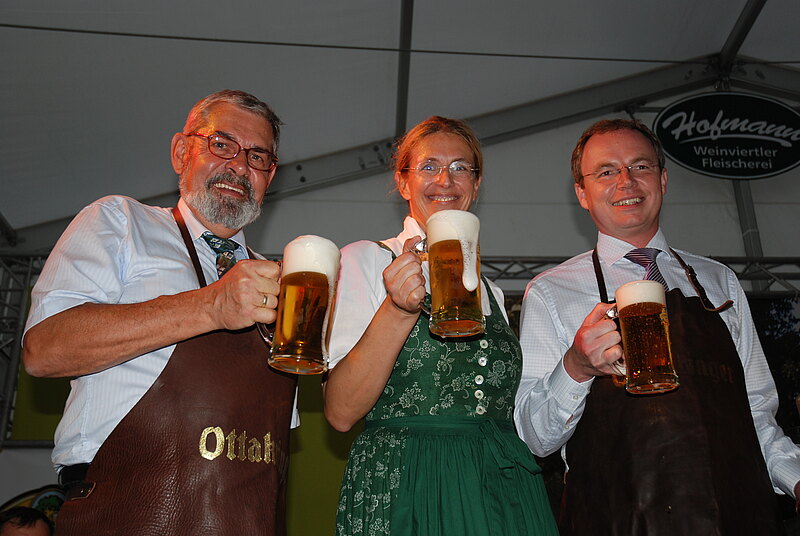 Der Bieranstich wurde von LR Dr. Stephan Perkopf gekonnt, schließlich kommt er ja aus der Bierstadt Wieselburg, durchgeführt. Abschließend landete der landesrta für Umwelt und Landwirtschaft im Heurigenzelt, wo die Winzer aus der Region das eine oder andere Glaserl Wein servierten.