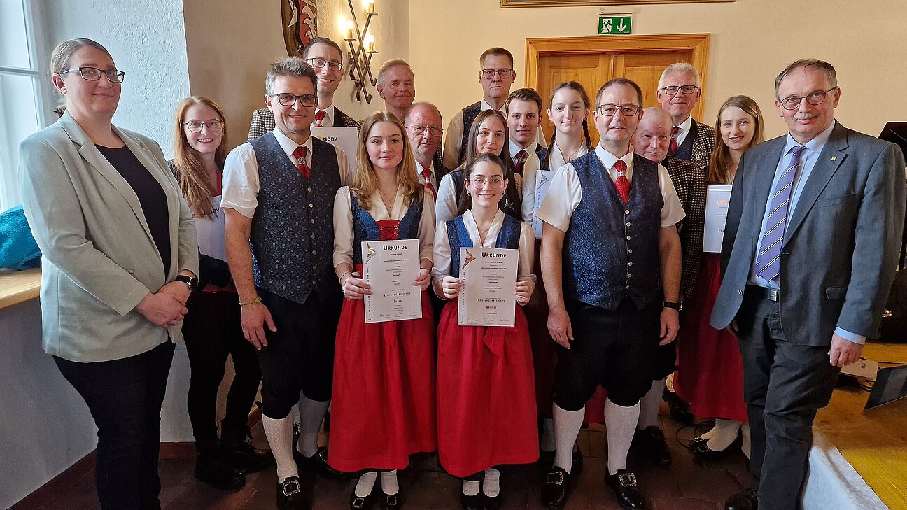Unter dem Punkt „Ehrungen“ erhielten einige Jungmusiker aus den Händen von Landtagsabgeordneten Richard Hogl in Vertretung von Landeshauptfrau Mag. Johanna Mikl-Leitner, sowie Bezirksobmann-Stellvertreterin Verena Lassel und Bürgermeister Christoph Hohl die Jungmusikerleistungsabzeichen in Bronze und Silber überreicht. Außerdem gab es einige Ehrenzeichen für langjährige Mitgliedschaft beim Niederösterreichischen Blasmusikverband in Bronze, Silber und Gold, sowie Gold für 50 Jahre.