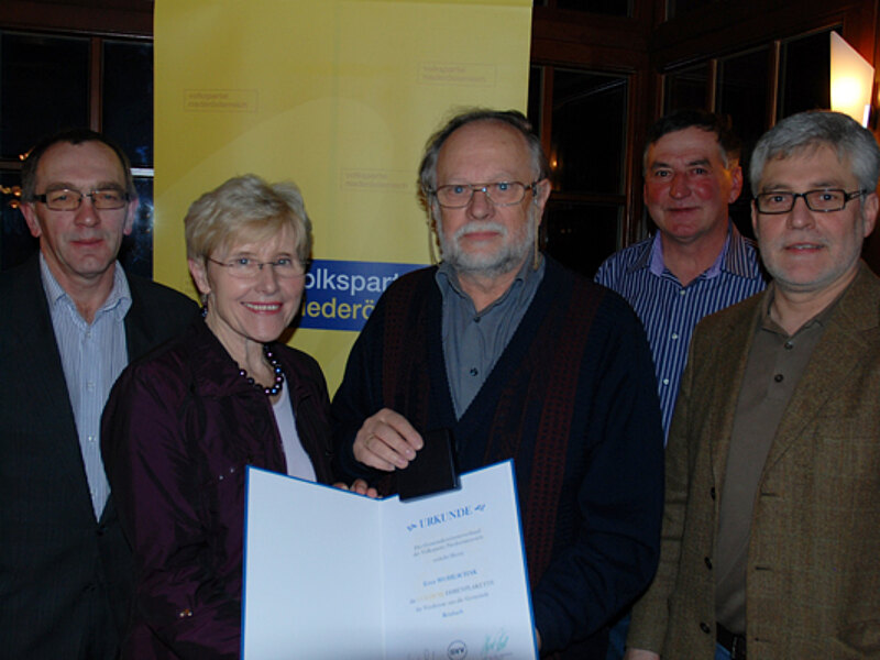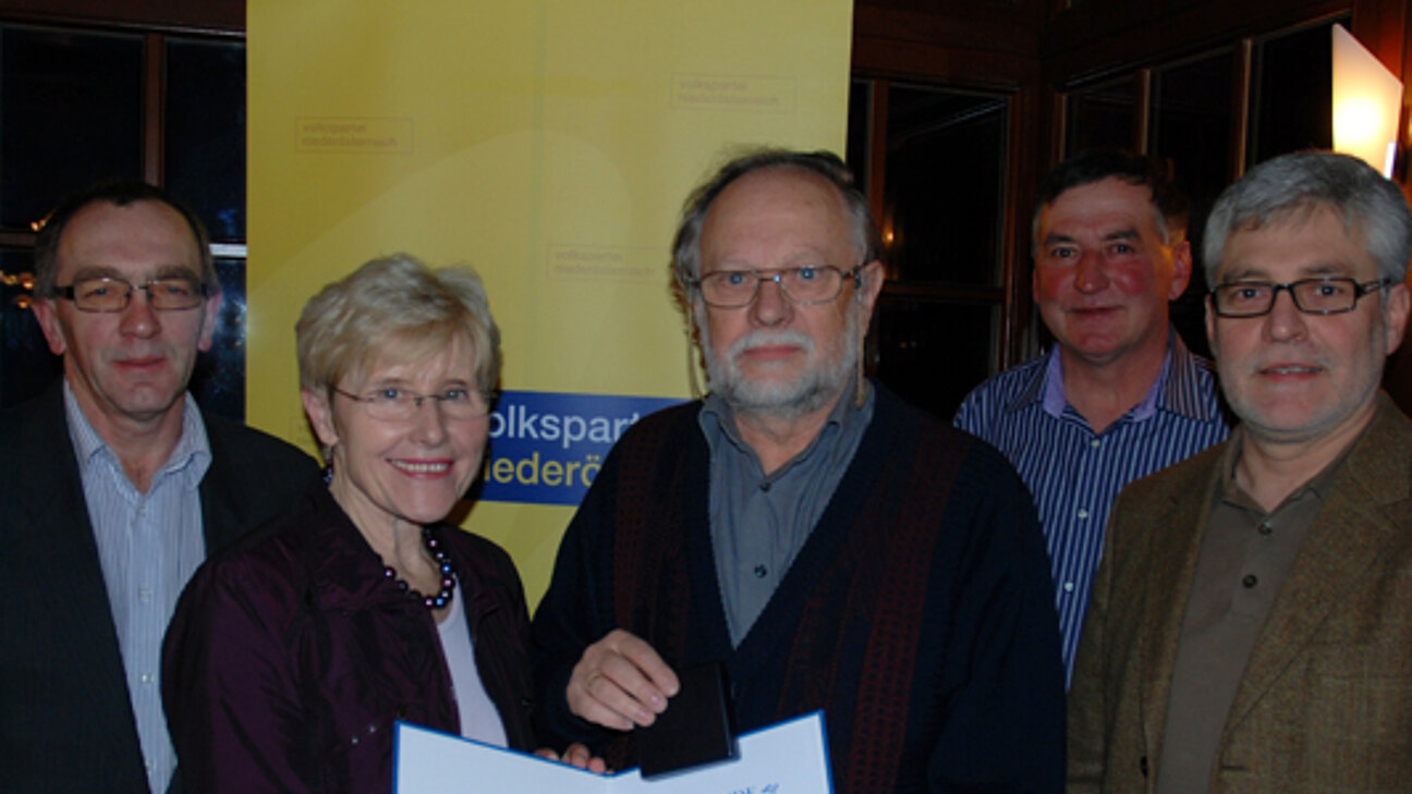 Gemeinsam mit Bürgermeister Manfred Nigl überreichte Lembacher das Goldene Ehrenzeichen des Gemeindevertreterverbandes an Ernst Wohlschak für seine langjährige Tätigkeit in der Gemeindepartei.