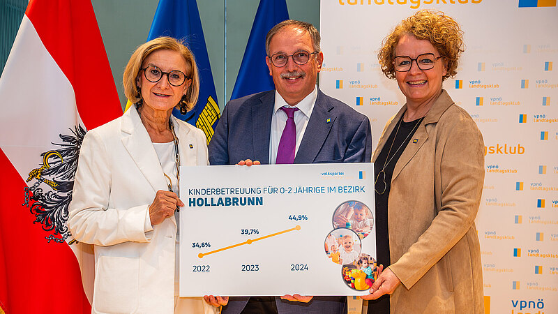 Vor diesem Hintergrund verweist Landtagsabgeordneter Richard Hogl auf die jüngsten Zahlen der Statistik Austria: Die Besuchsquote der null- bis zweijährigen Kinder liegt 2024 im Bezirk Hollabrunn bei 44,9 Prozent – ein deutlicher Anstieg seit dem Beginn der blau-gelben Kinderbetreuungsoffensive im Jahr 2022.