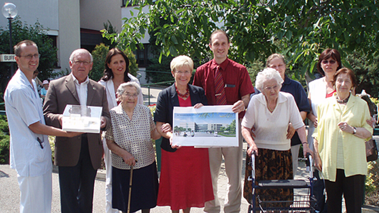 Nach dem Neubau wird es drei Pflegestationen für 108 Bewohner geben, aufgeteilt auf 3 Stationen zu je 36 Betten. Der Baukörper wird aus drei Gebäudeflügeln, die in den Obergeschossen die drei Pflegegruppen beinhalten, bestehen. Im offen gestalteten Zentralbereich werden Erschließung, Station und Pflegeeinrichtungen und Platz für gruppenübergreifende Gemeinschaftsflächen eingeplant. Die Zimmer in den Pflegegruppen werden sich um ein familiär gestaltetes Wohnzimmer mit Terrasse sammeln, erklärt Pflegeheim-Direktor Horst Winkler.