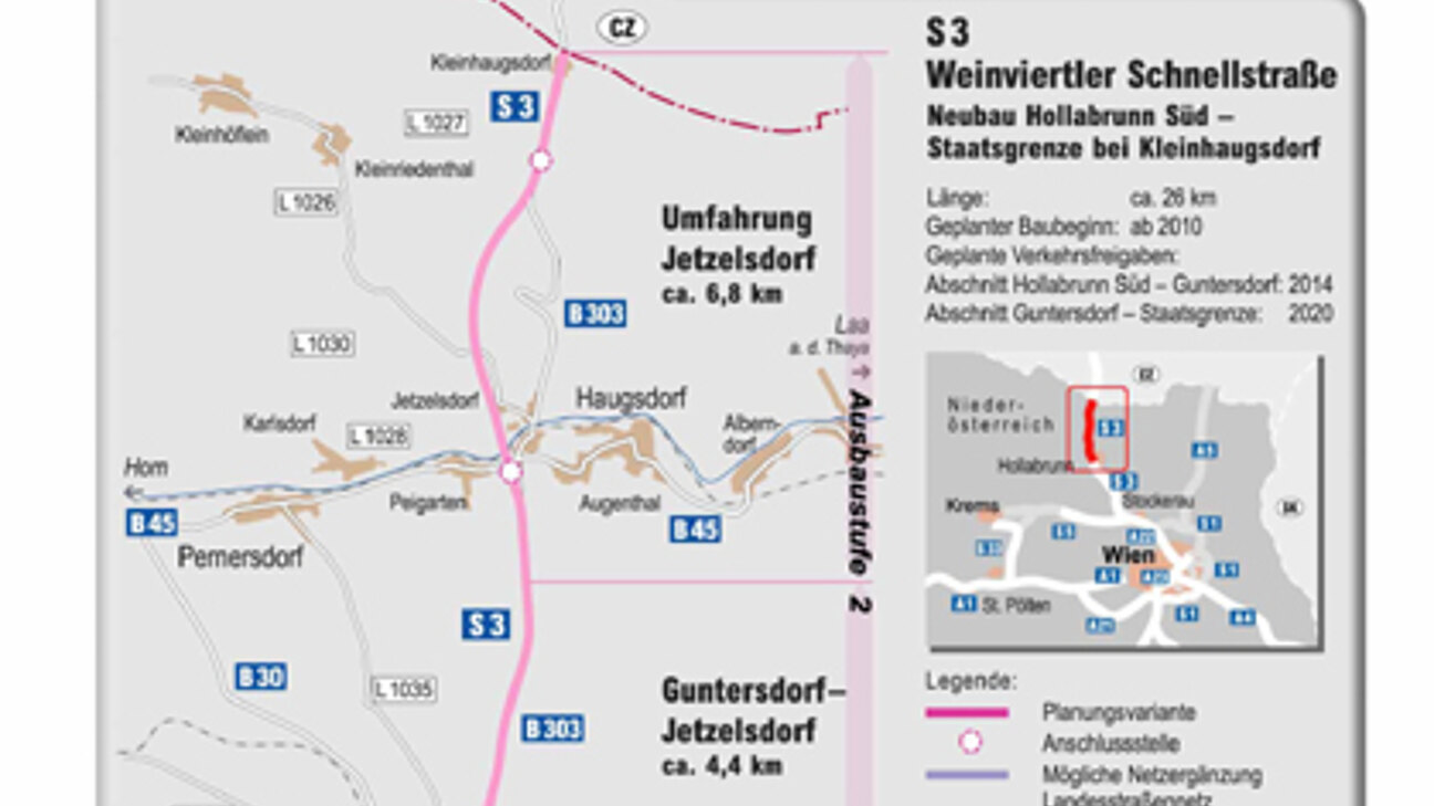 S 3-Trassenempfehlung für Abschnitt Hollabrunn Süd - Guntersdorf!