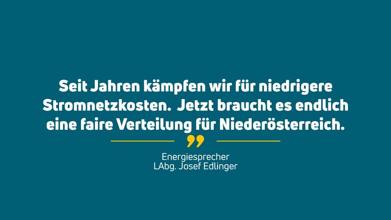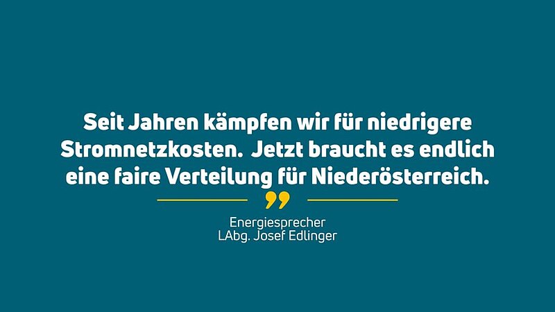 „Seit Jahren setzen wir uns als Volkspartei Niederösterreich dafür ein, die Stromnetzkosten in Niederösterreich zu senken. Gut, dass nun auch die SPÖ Niederösterreich unsere Forderung unterstützt“, betont der Energiesprecher der Volkspartei Niederösterreich, LAbg. Josef Edlinger. „Landeshauptfrau Johanna Mikl-Leitner und LH-Stellvertreter Stephan Pernkopf haben sich in den vergangenen Monaten intensiv um günstigere Energiepreise bemüht. Daher begrüße ich ausdrücklich, dass die Bundesregierung die Rahmenbedingungen geschaffen hat und die EVN mit 01. April den Strompreis senkt. Was es jetzt weiter braucht, ist eine faire Verteilung der Kosten für die Stromnetze. Niederösterreich ist die Ökostromlokomotive Österreichs, davon profitieren auch die anderen Bundesländer stark. Niemand versteht allerdings, dass unsere Landsleute die Kosten dafür alleine tragen müssen“, so Edlinger.
