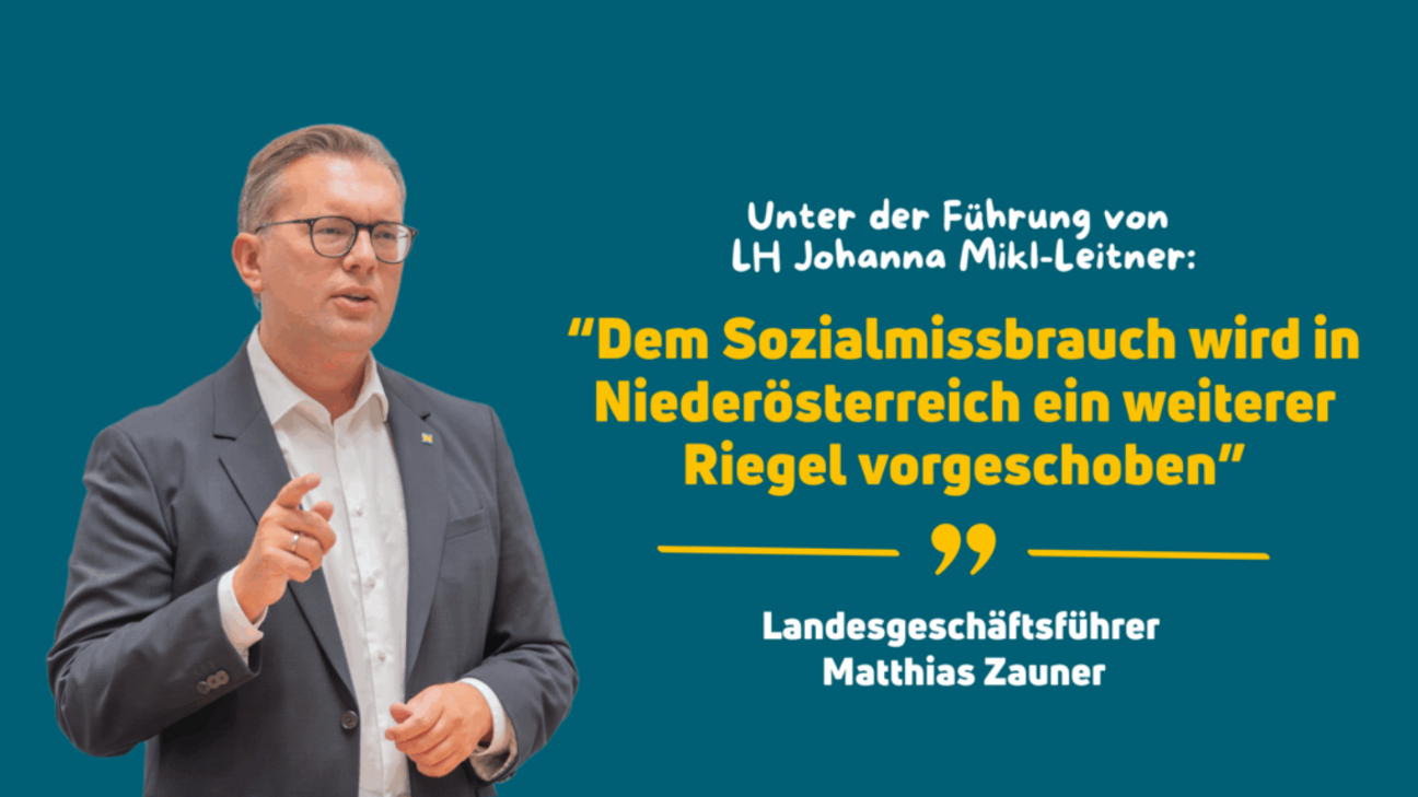 Volkspartei Niederösterreich Landesgeschäftsführer Matthias Zauner betont: „Die Landesregierung unter Führung von Landeshauptfrau Johanna Mikl-Leitner schiebt mit der Novelle des Sozialhilfe-Gesetzes dem vorsätzlichen Sozialmissbrauch in Niederösterreich einen weiteren Riegel vor. Wir haben in Niederösterreich bereits das strengste Sozialhilfegesetz Österreichs und wollen im Sinne der Fairness gegenüber der arbeitenden Bevölkerung weitere Verschärfungen vornehmen. Eine aktuelle Umfrage zeigt: 75 Prozent der Bevölkerung stehen hinter einem österreichweit einheitlichen Sozialhilfesystem. Dieses klare Meinungsbild macht deutlich, dass die Menschen Gerechtigkeit erwarten – unabhängig davon, in welchem Bundesland sie leben. Wir fordern daher eine österreichweite Harmonisierung nach dem Modell Niederösterreichs – die niederösterreichische Sozialhilfe muss die Oberkante sein. Nur so ist sichergestellt: Wer arbeitet, darf nicht der Dumme sein! Die Sozialhilfe soll für jene da sein die das System brauchen, um nach Schicksalsschlägen wieder Fuß zu fassen – dieser Zusammenhalt zeichnet uns als Bundesland aus. Wer unser großzügiges Sozialsystem jedoch missbraucht, muss mit Sanktionen rechnen.“