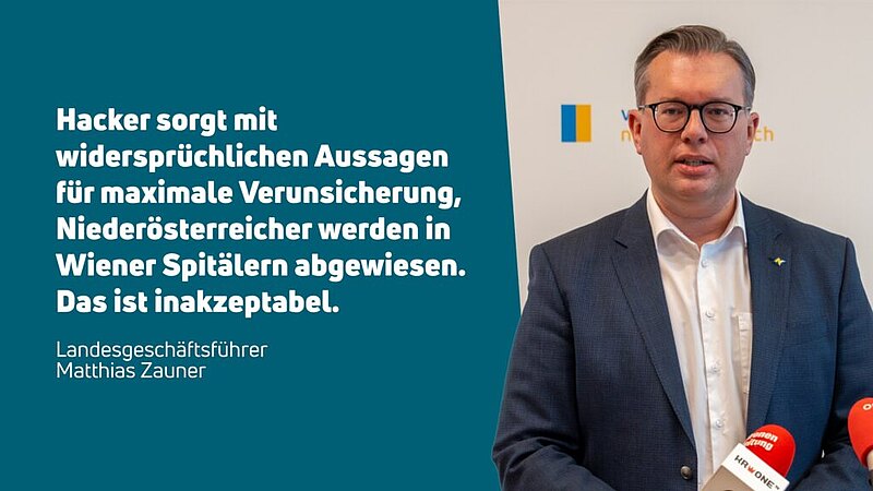 „Wir hören die Worte des Herrn Hacker, können sie aber kaum glauben“, reagiert der Landesgeschäftsführer der Volkspartei Niederösterreich, Matthias Zauner, mit Unverständnis auf die jüngsten Aussagen des Wiener Gesundheitsstadtrats Peter Hacker in der Gastpatienten-Debatte. „Einmal heißt es, es gibt eine eigene Warteliste für Gastpatientinnen und Gastpatienten, dann stellt sie Herr Hacker wieder in Abrede. Das Ergebnis ist eine maximale Verunsicherung der Patientinnen und Patienten. Wartelisten hin oder her, Fakt ist: Die niederösterreichischen Landsleute werden in Wiener Spitälern nach monatelangen Wartezeiten oft gänzlich abgewiesen. Und das, obwohl Bürgermeister Ludwig erst 2023 im Rahmen des Finanzausgleichs seine Unterschrift unter die Gastpatienten-Regelung gesetzt hat. Um in dieser Frage für Klarheit zu sorgen, unterstützt das Land Niederösterreich die Klage eines Patienten, denn unsere Landsleute erwarten sich eine Lösung – entweder am Verhandlungstisch oder vor Gericht.“